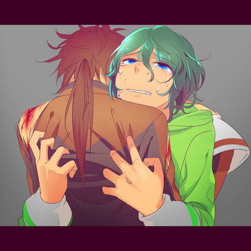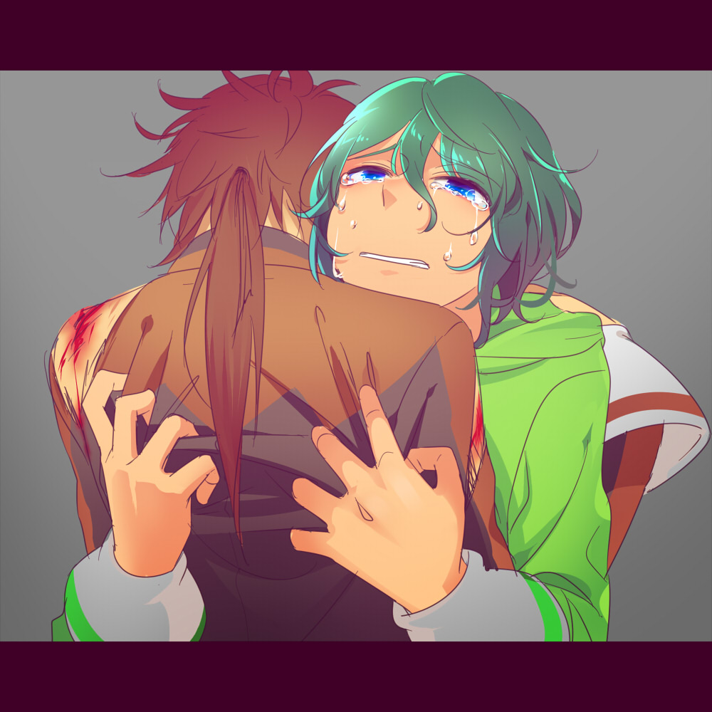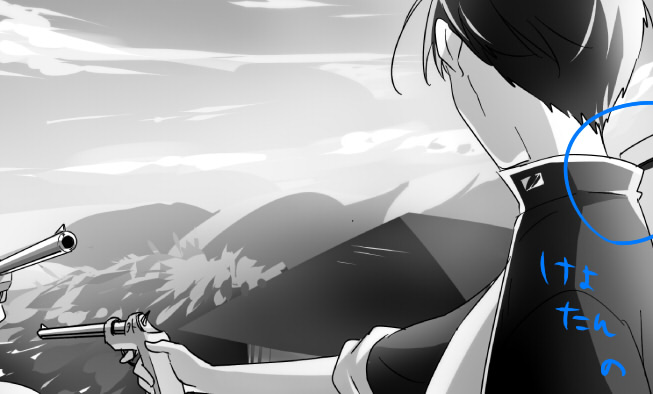 昔、みっくんを守るために怪我しまくったきっちゃんが みっくんを抱きしめてるのを描いたのを突然思い出し、 きっちゃんの顔しか見えなかったので逆から描いてみた みっくんには直接的な攻撃方法が無いから俺が守ってやらなきゃ!って感じで 別にみっくんが弱いからとかそんなん微塵も思ってないきっちゃんなんだけど いつも(きっちゃん以外からも)守られてばかりで 自分に自信がなくなってしまうみっくん っていう妄想はこれまで 述べ100万回はしてるんだけど、飽きないんだなこれが 描くごとにイケメンになっちゃうきっちゃんはコレジャナイって思うんだけどとめられない もっとカブトムシとか道端に落ちてるセミの抜け殻とかを採集して わははとか言ってるのが似合うとはわかっているのですが 戦っててもあらぬ方向に突進していって味方を巻き込むとか そういうの日常茶飯事なんだろうなとは思うのですが なぜか茶緑になると突然男前度数がうなぎ上りでイケメンになっちゃう とめられないんですよねえ 全然関係ないけど、寄稿させていただいたソラトさんの御本の 自分のマンガページでどうでもいいネタバレします 目線の先の人にやられました 最初なんも考えてなかったんだけど、どうせならと思ってガン飛ばさせました 因みに優勝したのがあの人なのは、最後に対峙した人となら絶対負けないだろうなと 思ったからです それだけ 彼の方がいつの時代も一枚うわてであってほしい けよたんの銃は数ページ前から隠してました そしてけよたんの銃の先はまさかのハハッになってるんだけど 関係者の方々に気付かれないか戦々恐々の日々です そして自分なんぞのマンガに感想をくださった方には感謝感激です おっかない中央さんに笑ってくださった方がいて励みになりました 前コマといかにギャップ付けられるか何度も描き加えたので本当にうれしかった! 読み返すと本当にだめだめなところばっかり見えてきて 描きなおしたい感満載です あざ笑ってやってください タグ:シュトケンジャー 茶緑 外内合同誌 |