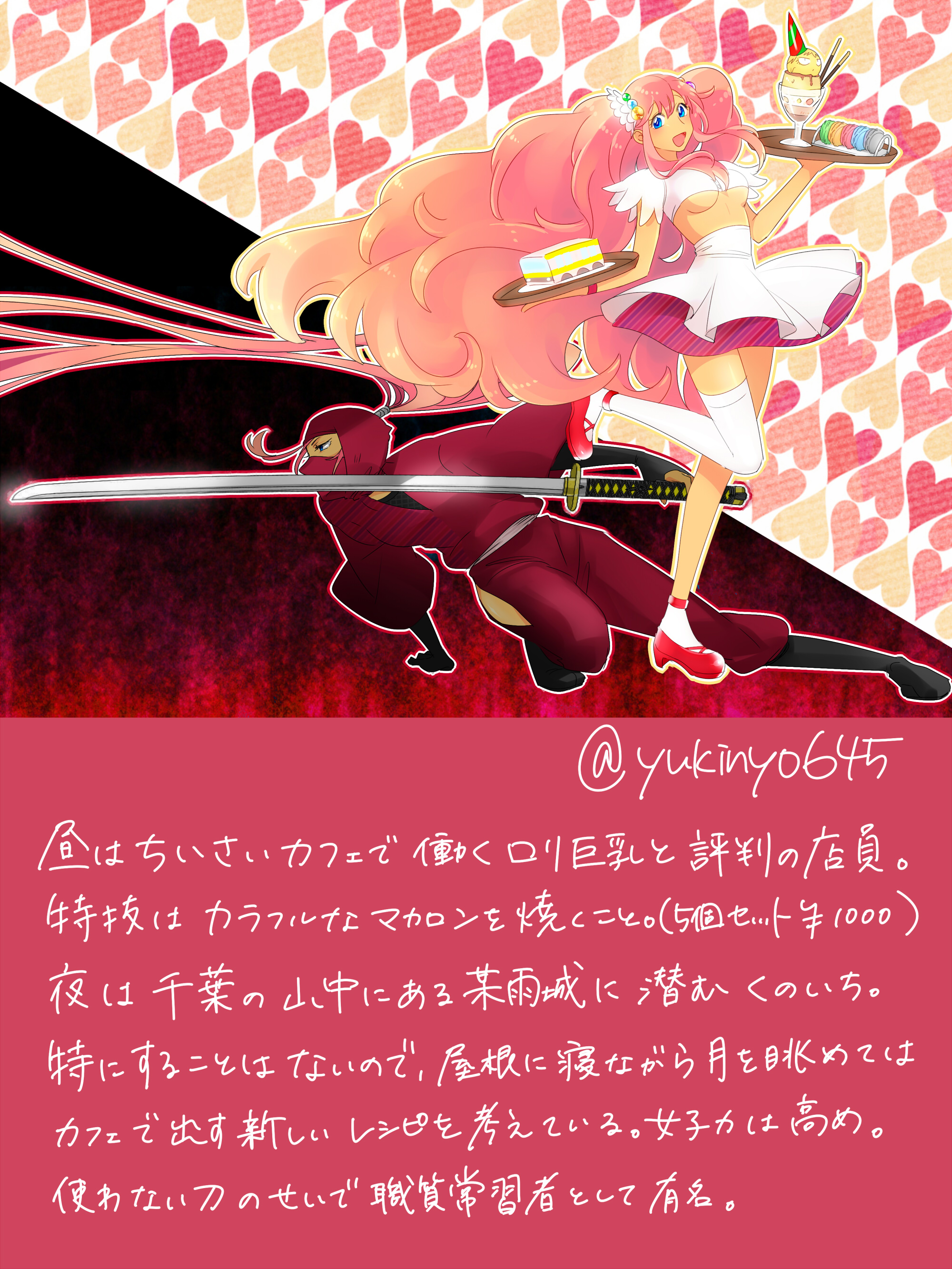ふぉろあさん戦士化7人目も、青鉄でお世話になってるユキニョさ~~~~~~ん 圧倒的女子力をchが絵に出来るわけがなかった(迫真白目 遊んでくださるたびにおいしいお菓子をたくさんくださるので スイーツ的イメージのまま女子力高そうな店員さんと 夜行性かつ時代物がお好きなイメージで女忍にしてみました 二重人格じゃないよ しっかしこれだといつ寝てるんですかって言うついったーでよくある感じになっちゃうかな ちなみに初期案は女子力のある(仮)忍びが高い木の枝に寝そべってるって絵でした~ 風景が死亡したので描きなおしたでござる 店員さんが持ってるマカロンはもちろん千葉ズカラーです そして右手は総武線です 下乳はロマン それはそうとこの企画もなんとか全員描き切ることができました~~~~~~~ 先ほど終了した させた 年内に終わらん宣言しましたがギリ達成しました そしてこの企画が終わったので次は間髪入れずに成田僧受けエアアンソロに なんらかの寄稿をすべく奮闘いたします 今年もあとちょっとか こんなところ(byチャ―研)ですが今後ともお願いいたします 敬具↑ PR |