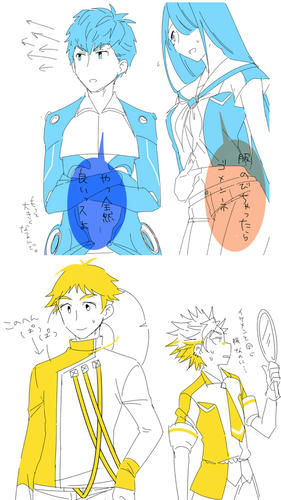申 し 訳 土 下 座 以下よその子に関する自分の妄想多々有ですので気を付けてください 今更感すげぇ メカ蒼ちゃん描いててあんまり違和感無かったのは前描かせていただいたからだな 違和感ないのは駄目だろう さすがにユフのが身長あるのでさらに腹が出るスタイル 神はこうきくんの服着てもイケメンになりませんでしたざまあ 神は身長あるけど細身なので、こうきくんの筋肉質ボデーにはきつそう 両手にうちわもって「どうやって戦ってんだ?このうちわ刃でも出るのか?」って言う ちなみにボナはいむいむの、ザッツはみっくんの、常ちゃんはひろたんの服借りましたが きっつきつで入らず終いでした 常ちゃんは胸回りしっかりしてるので ひろたんの隊服が前からびりーってなって大慌てで赤面して終わる 童貞臭 あと常見の服着たひろたんがなんかオタク臭くなってしまって血涙 どうでもいいけどいむいむとボナがそれなりに仲良くなったら お互いを呼び捨てで呼んでほしい いむいむが「ボナ」って言うの聞きたい ch聞きたい いいのボナはメカ化した時小学生だったから ボナも誰かをさん・くん付で呼ぶ感じじゃないしな きっちゃんは唯一ユフのことをユフちゃんって呼んでくれそう 他のみんなはさん付けで んで「ユフちゃんちょーー美人!」とか言うからザッツと仲良くなる あと神はみんなに「どんな技で戦うの?」って聞かれてすげえ困る 灰君のたいこドンドンを見て、振り下ろす・叩く・振動する・反響する の一連の流れを エネルギーに変換して使えないかな??って常見がにこにこするから 灰君は思わず真顔になる あとGIGと関わったら一番の被害者はたぶんももちん 週刊HENTAIを持ったザッツと神に挟み撃ちにされる まさにD4C すいませんいっぱい妄想出てくる アカン |