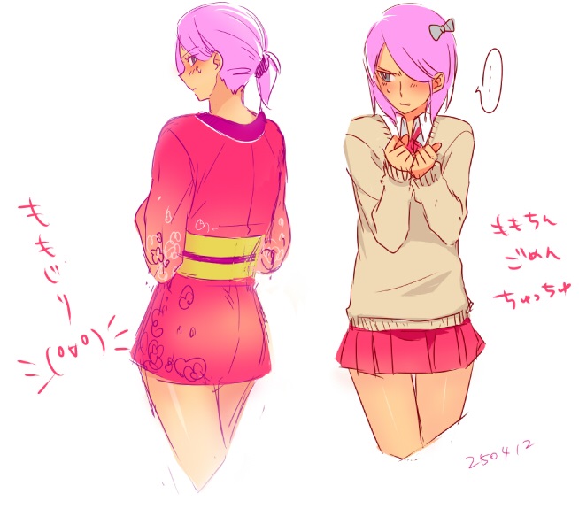 ぱっせろたん誕生日にあげたやつ~の加工前というか加工後というか の3ねんせい! 3年生はかっこよく!!をモットーにだな・・・っていっつもそれ言ってるか! すごいどうでもいいうらばなしメモ 8人を地図通りに配置させたのをプレゼンツしたんだけど、 ラフの段階でそれを思いついて、そうなるとももちんが一番上(北)にくるなーと気づき、 みんなの頂点でラスボスっぽい感じの風でも吹かせようと思って一番に浮かんだのがももちんの後ろ姿だった が、あの髪のふあふあなびく感じがいまだにつかめない…ね…那須高原の田舎かぜあびてるね… てんまりにも花柄のテクスチャつかいまくって、なんか春の妖精になった栃木くんまじフェアリー 灰くんは…今見たらなんか・・・髪の毛もちょっとふわふわだよね天パ 整形ならぬ整髪するね 「武器持って」「外に飛び出す」条件つきで描く予定だったのでなかなかポーズ決まらなかったね あと公式で手を出さないから、できるだけ出さないようにしたいなっていつも思ってるんだけど…ぐぬう! そしてなぜこんなに尻突き出したし プレゼンツしたやつでは隠れちゃったけどね! あとブログ投稿用に加工するついでにおめめチラ見せとかやりたかったんだけど 来世でやる(うまくいきませんでした)エロ目群馬くんはまた挑戦したい! こうきくんもポーズ難産だった~~もうミリ単位で修正した!!絶望しながら!! 8人お互いどこかは重なっちゃうってわかってたから、 隠れてもいいとこと、隠れちゃわないようにするとこと、何度も確認してたんだけど、 武器のうちわ見えるようにするのに蒼ちゃんを描きなおしたりひろたんの幅考えたり 頭悪すぎてそういうのできねえから!!結局まあいっかってとこで落ち着いた千葉くん 左手はうちわ持ってるけど見えないように、しかし腕あげすぎるとセクシーポーズになるから注意した つぎは二年生うpりたい 2年トリオも難産続きだったけど楽しかった!! PR |